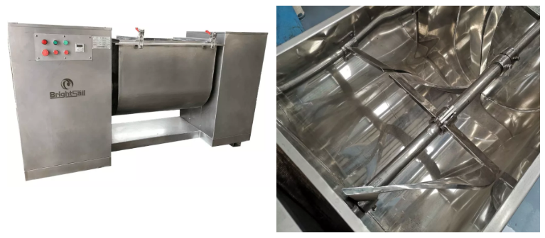 mixer ,the S shape blade turns target materials to-and-fro to mix it evenly.